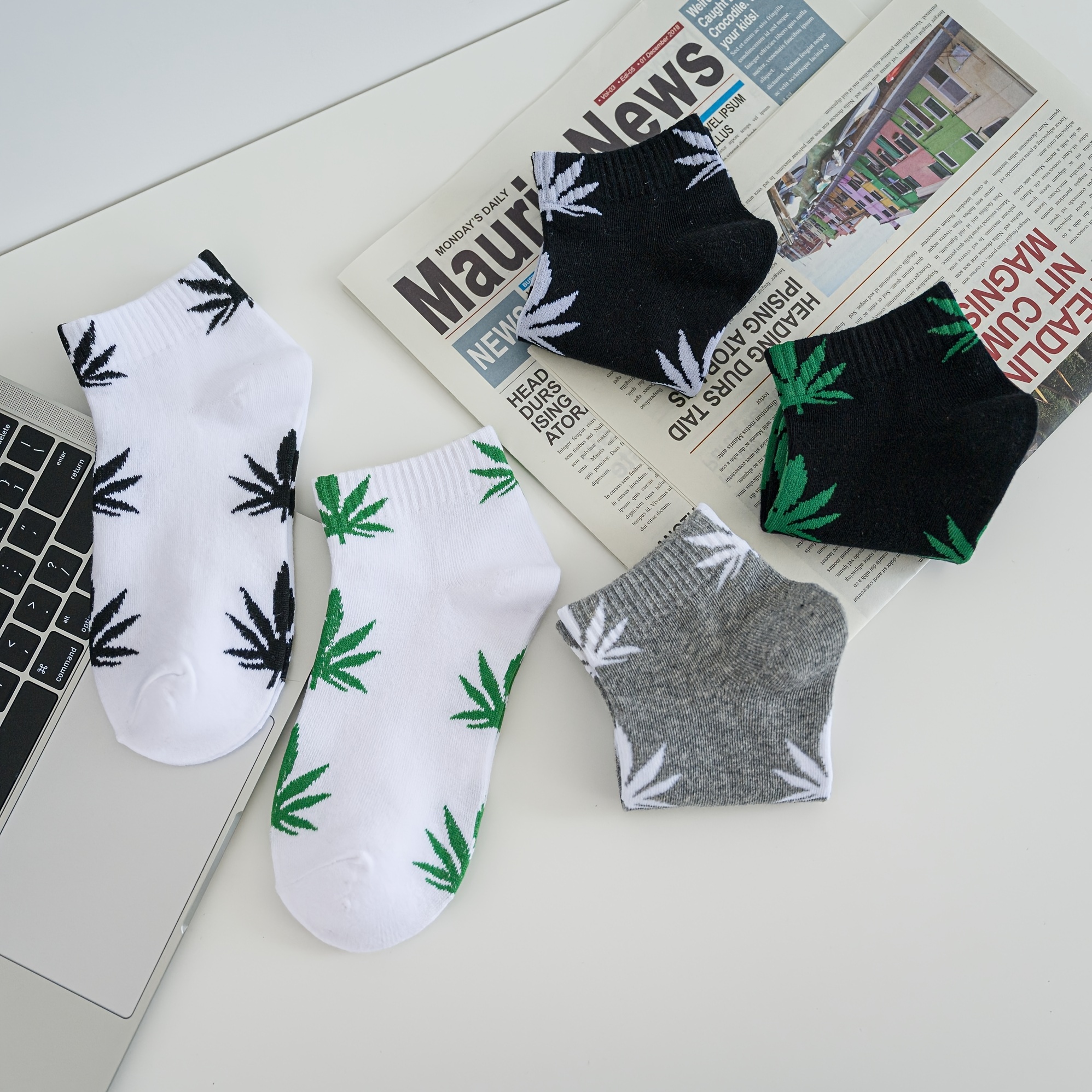 5pairs Men's Print Cotton Breathable Sweat Absorbing Ankle Socks