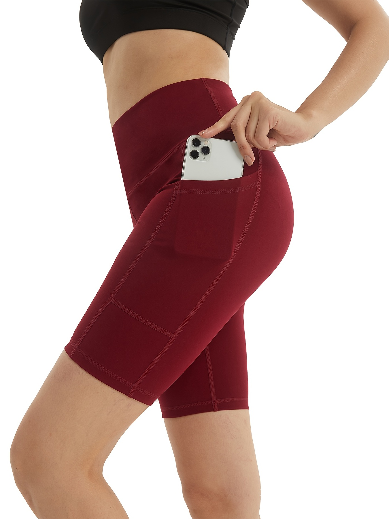 Classic High-waisted Side Pockets Stretchy Slim Fitted Yoga Biker Shorts