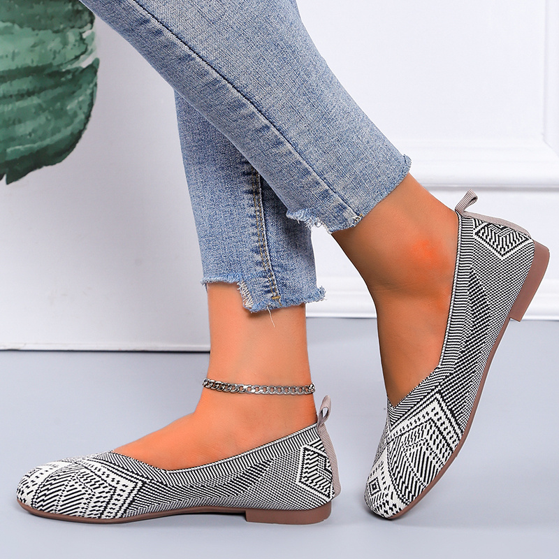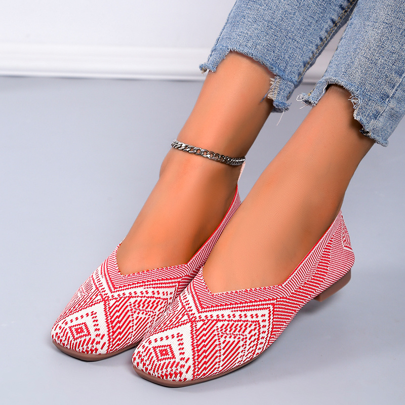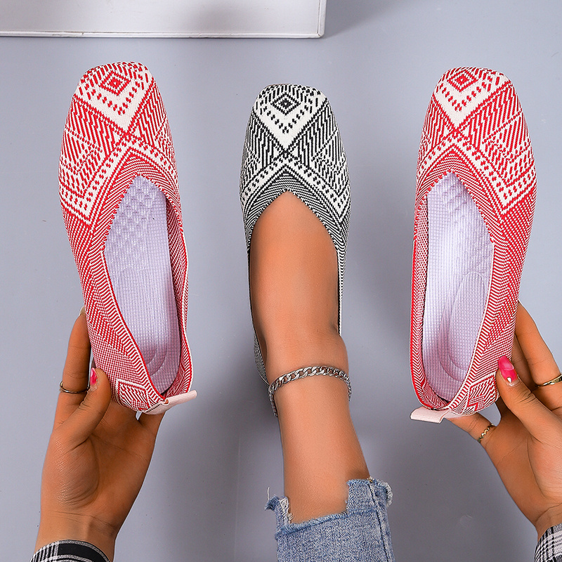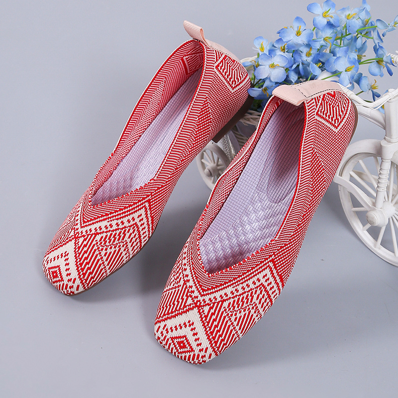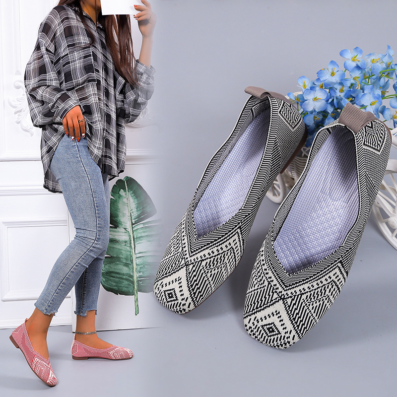 Flying Woven Geometric Pattern Slip-on Flat Ultra Light Breathable Soft Sole Ballet Shoes