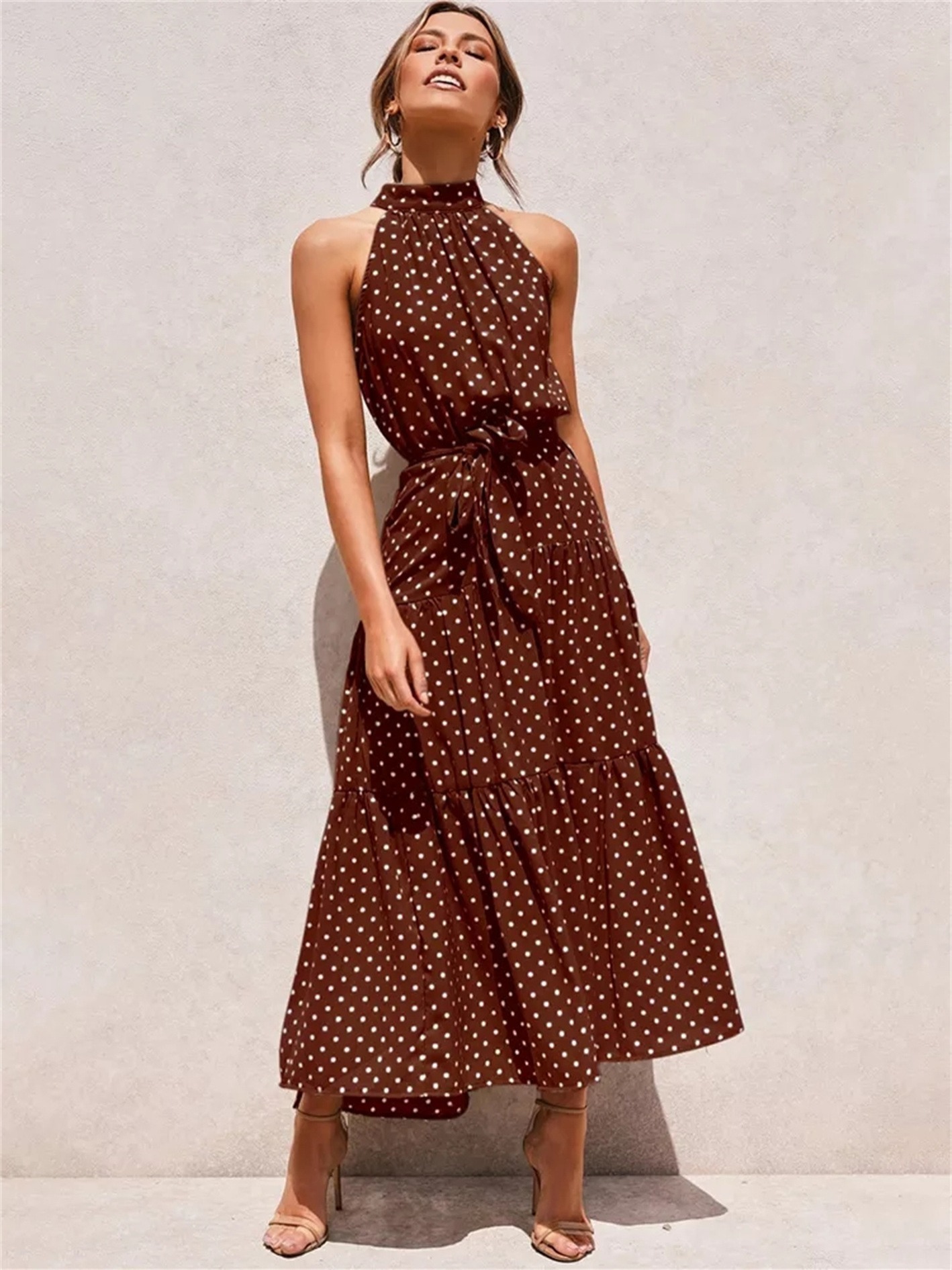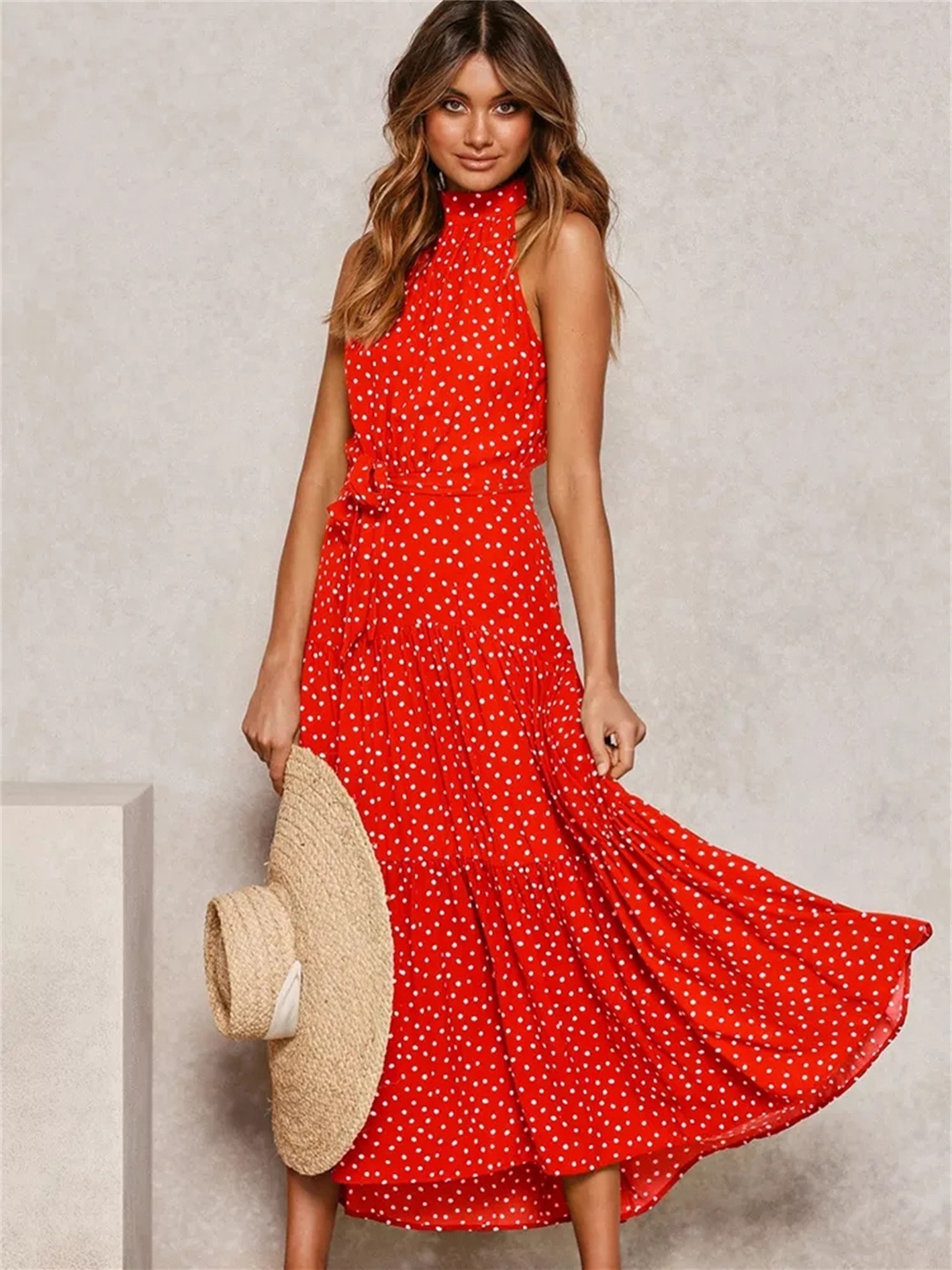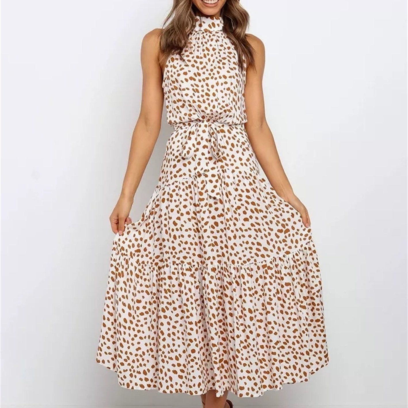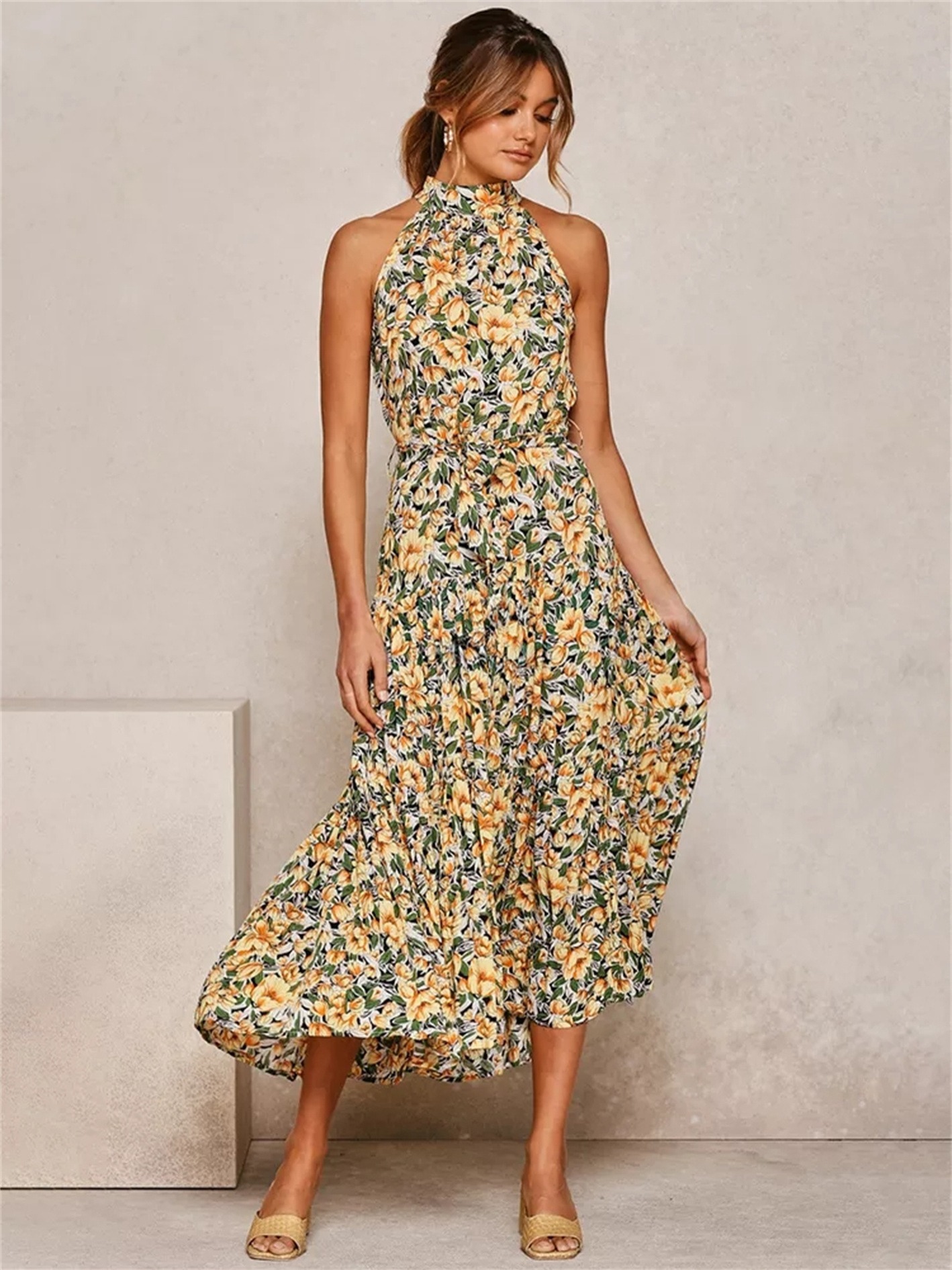 Halter Strapless Neck Floral Print Summer Vacation Dresses