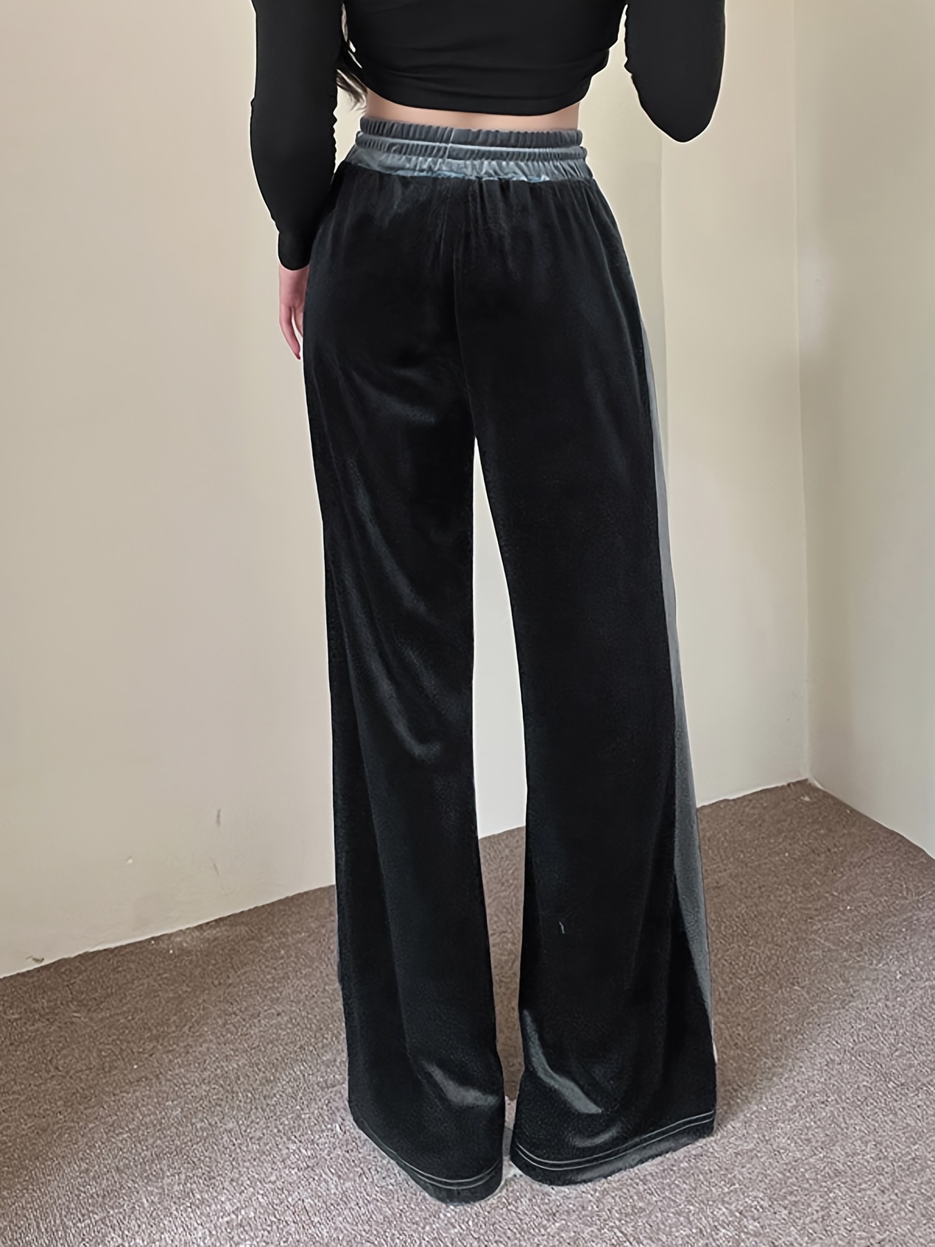 Loose Straight Color Block Casual Pocket High Waist Wide Leg Fashion Comfy Slim Pants