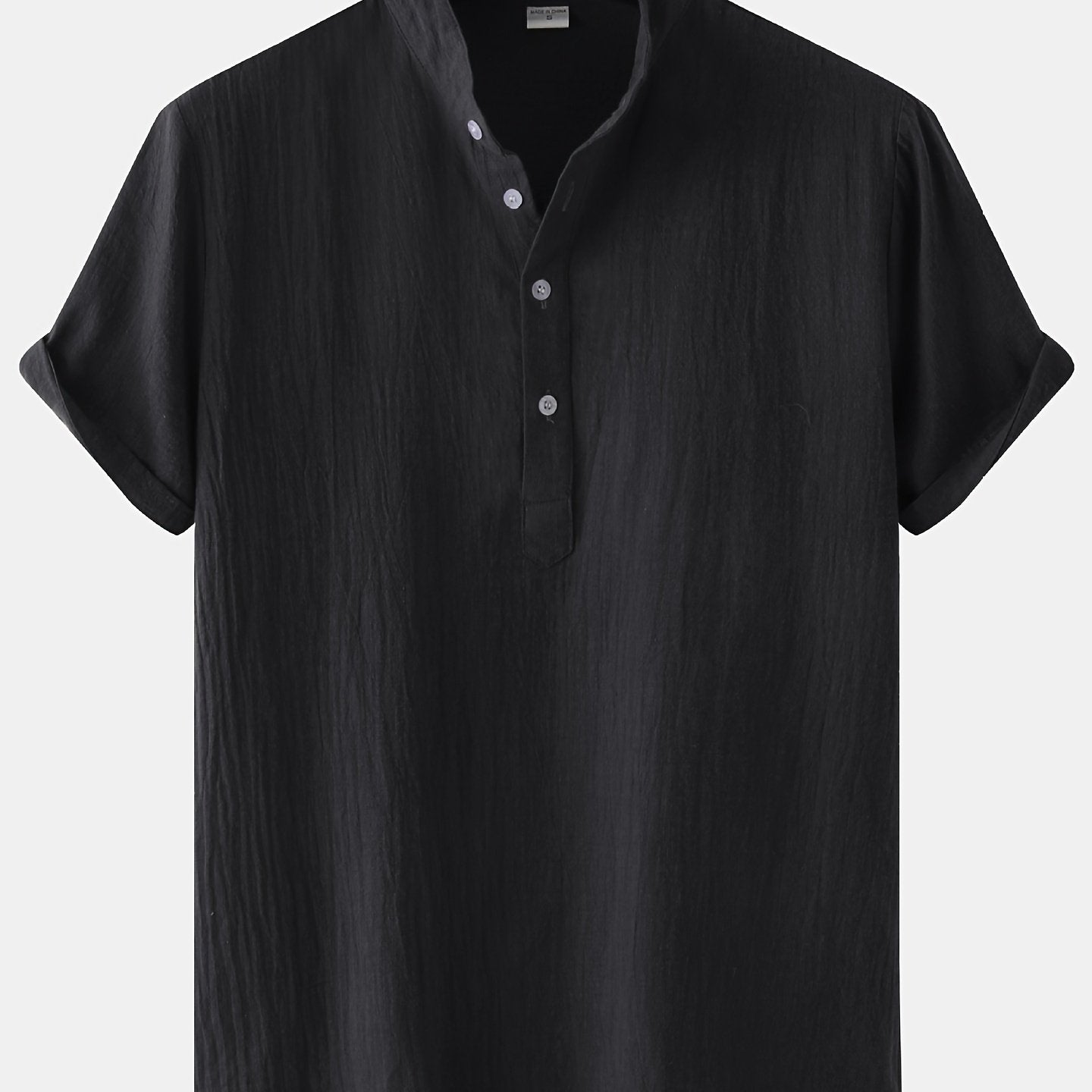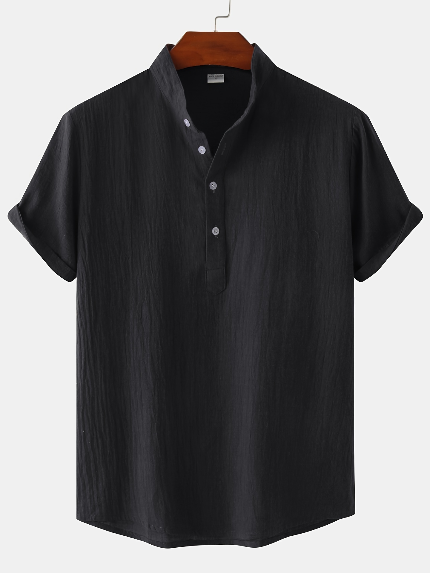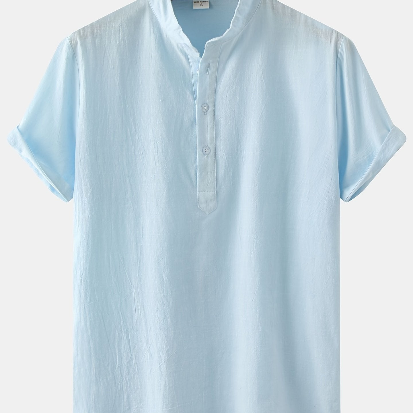 Men's Casual Simple Cozy Cotton Linen Short Sleeves Stand Collar V-neck Shirt