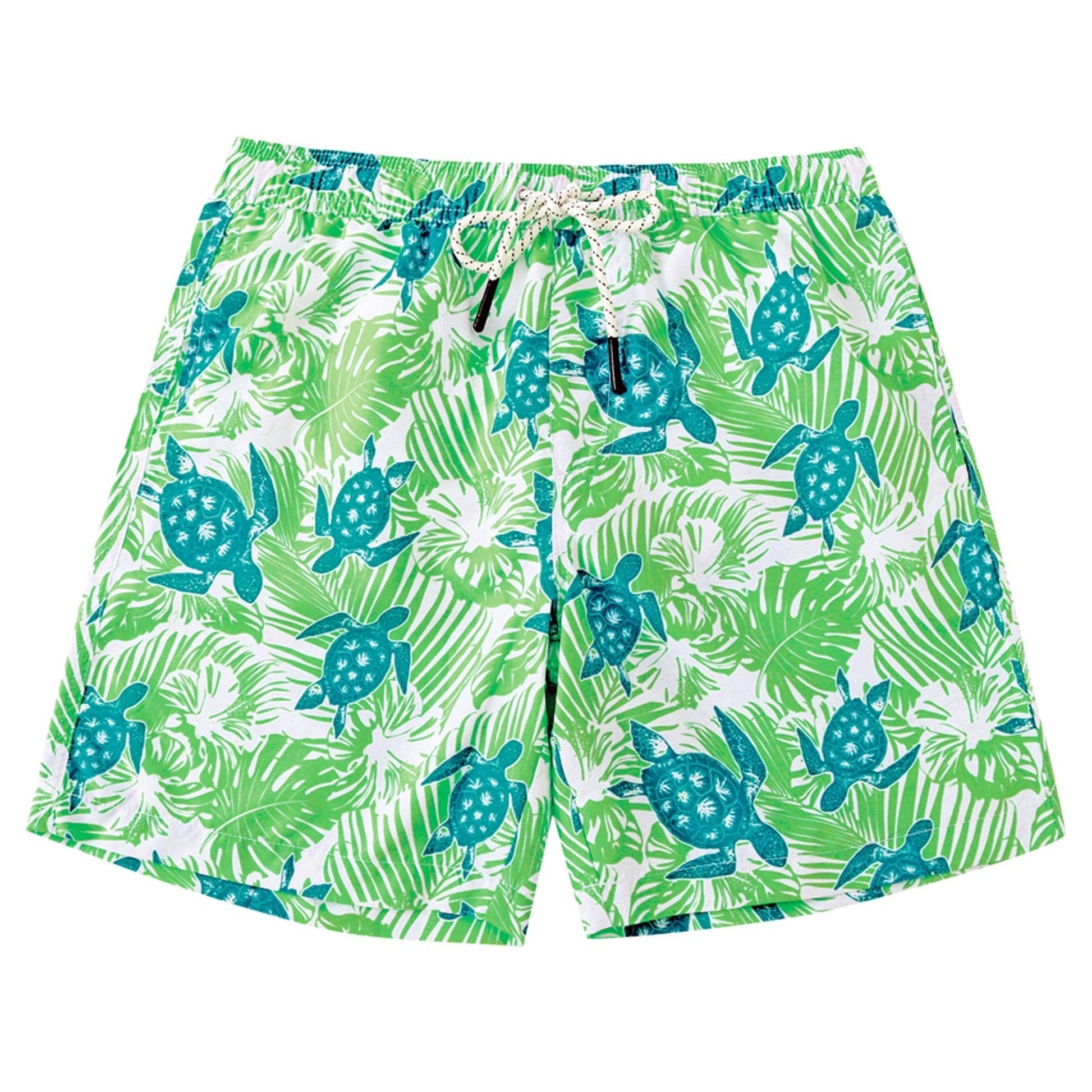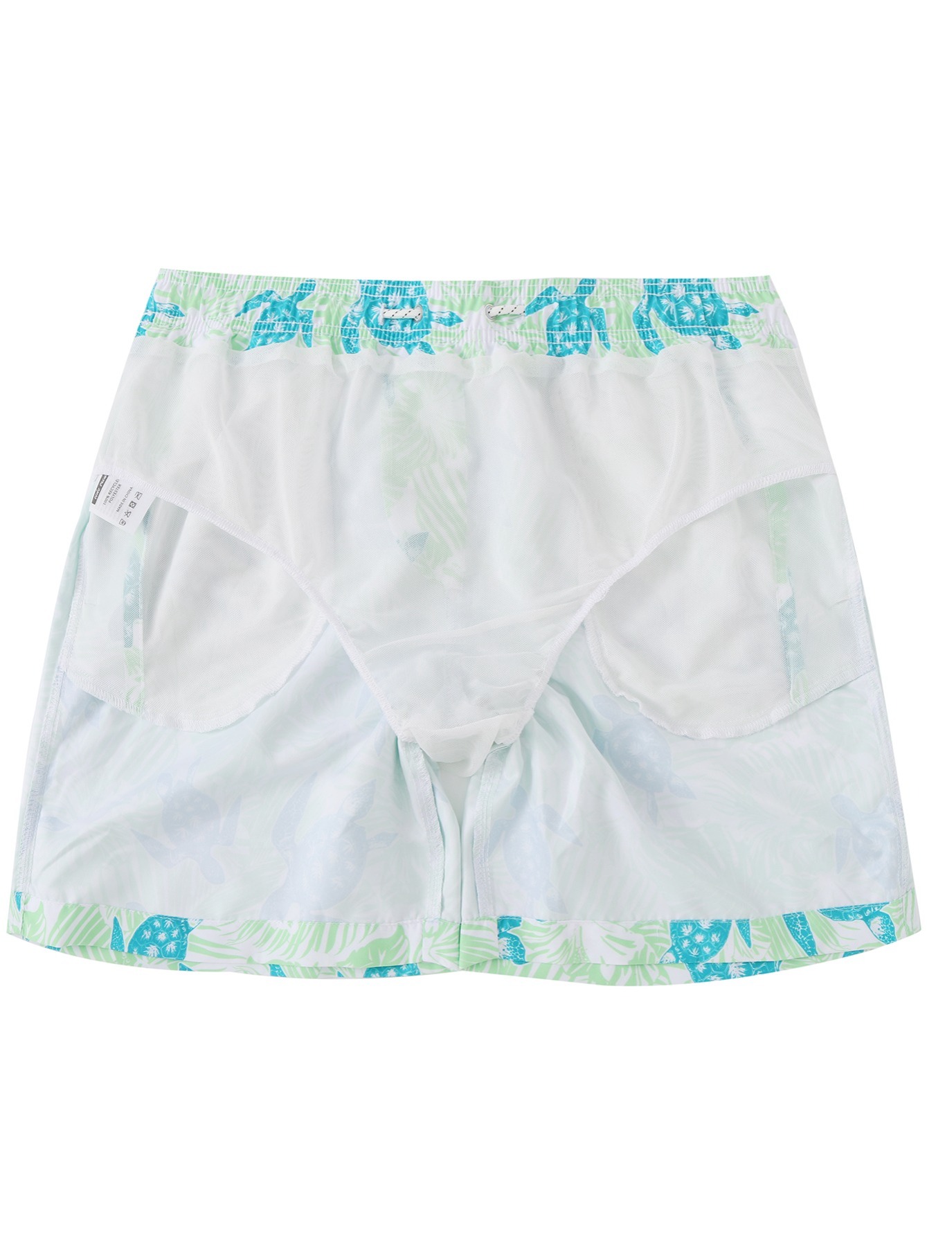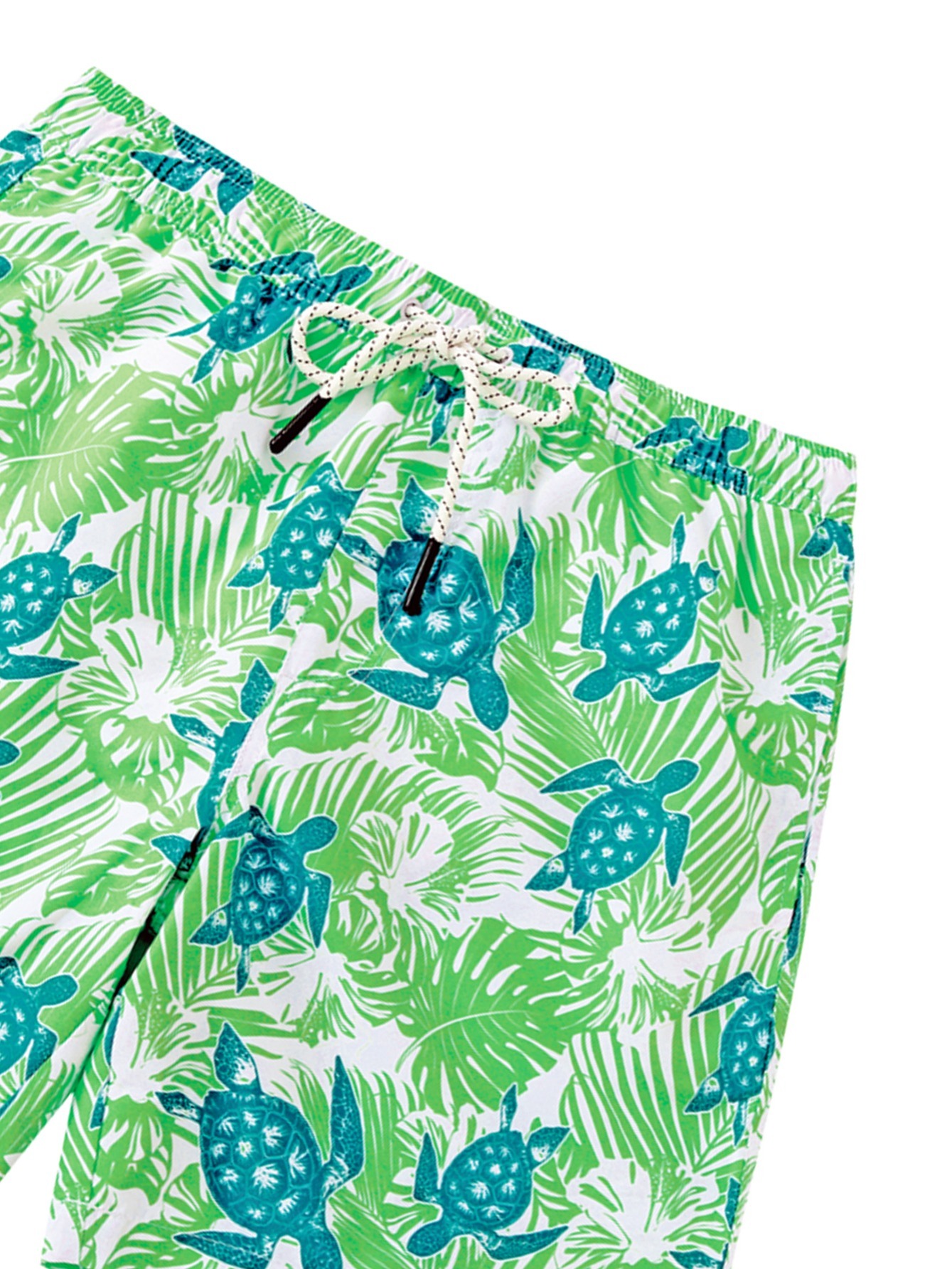 Men's Quick Dry Beach Shorts With Tropical Turtle Pattern