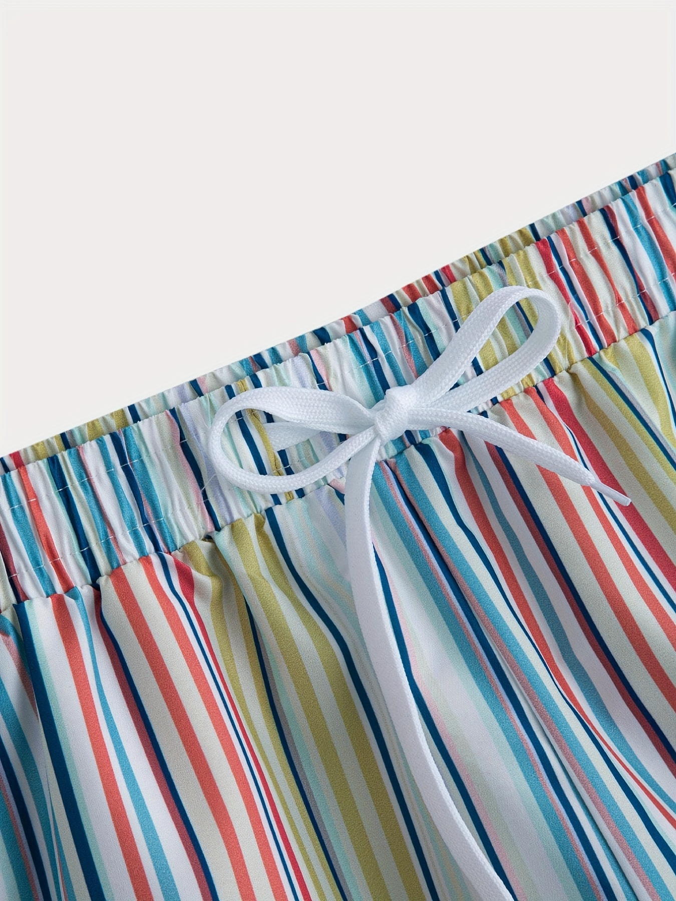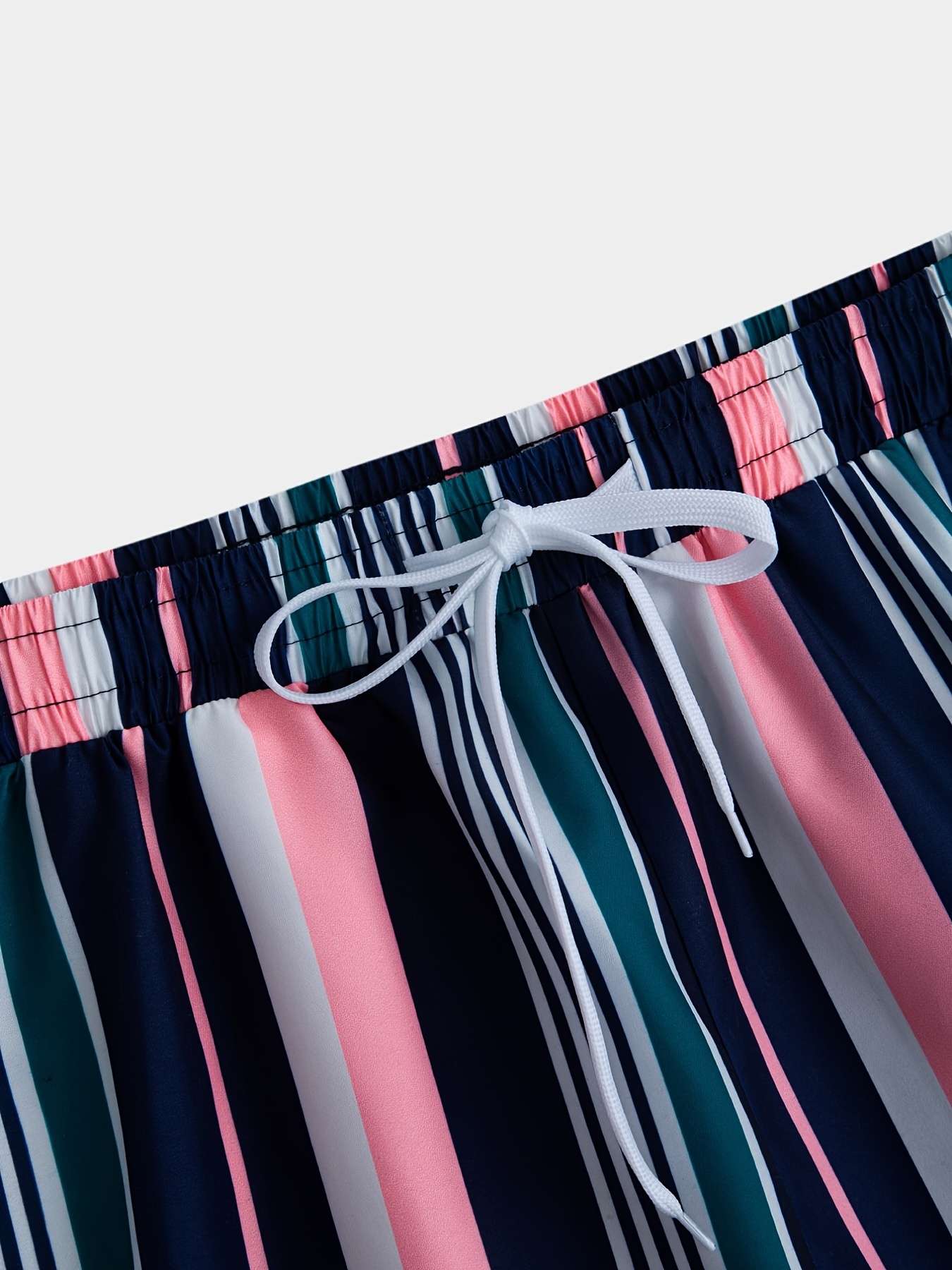 Men's Vertical Striped Swim Trunks Quick Dry Beach Shorts For Holiday