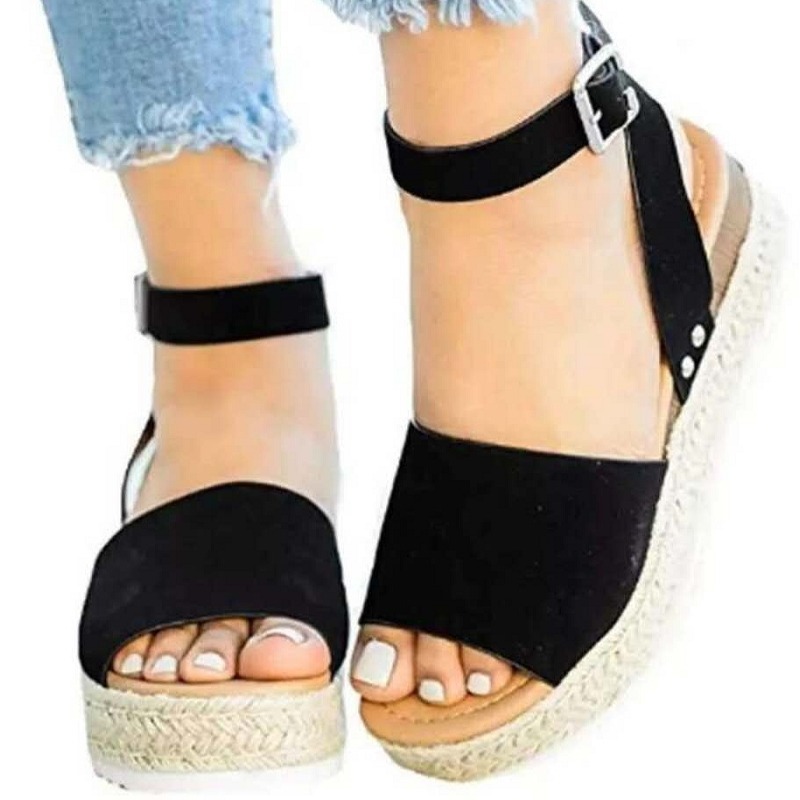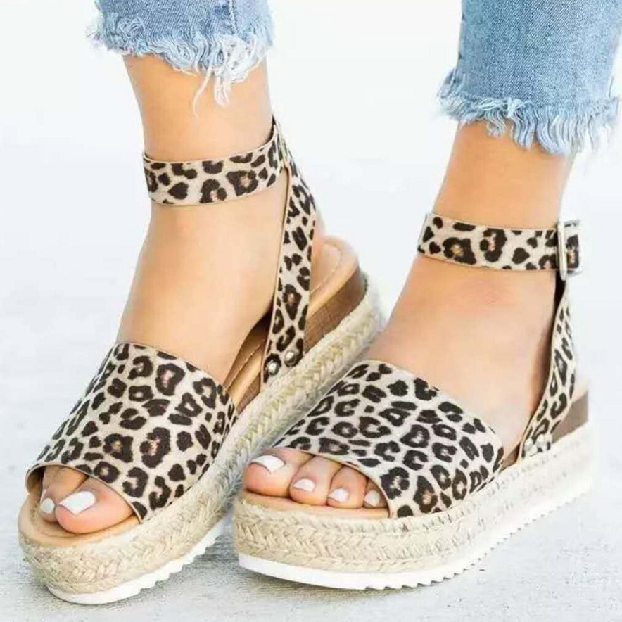 Platform Leopard Print Open Toe Backless Wedge Buckle Beach Sandals