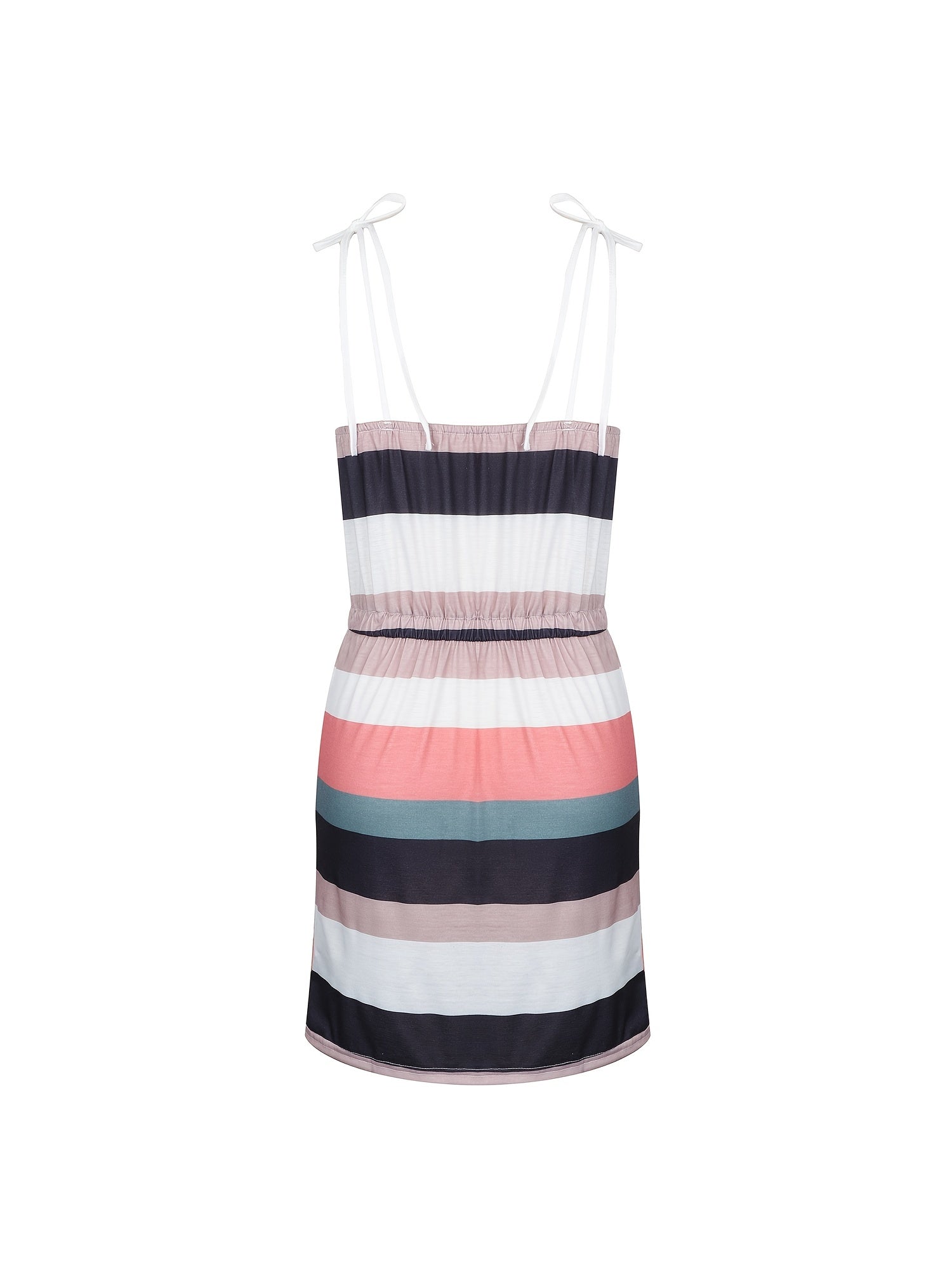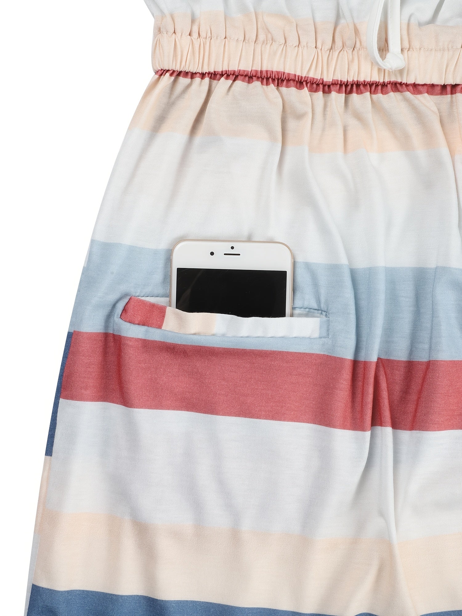 Striped Drawstring Lace Up Pocket V-neck Sleeveless Dress