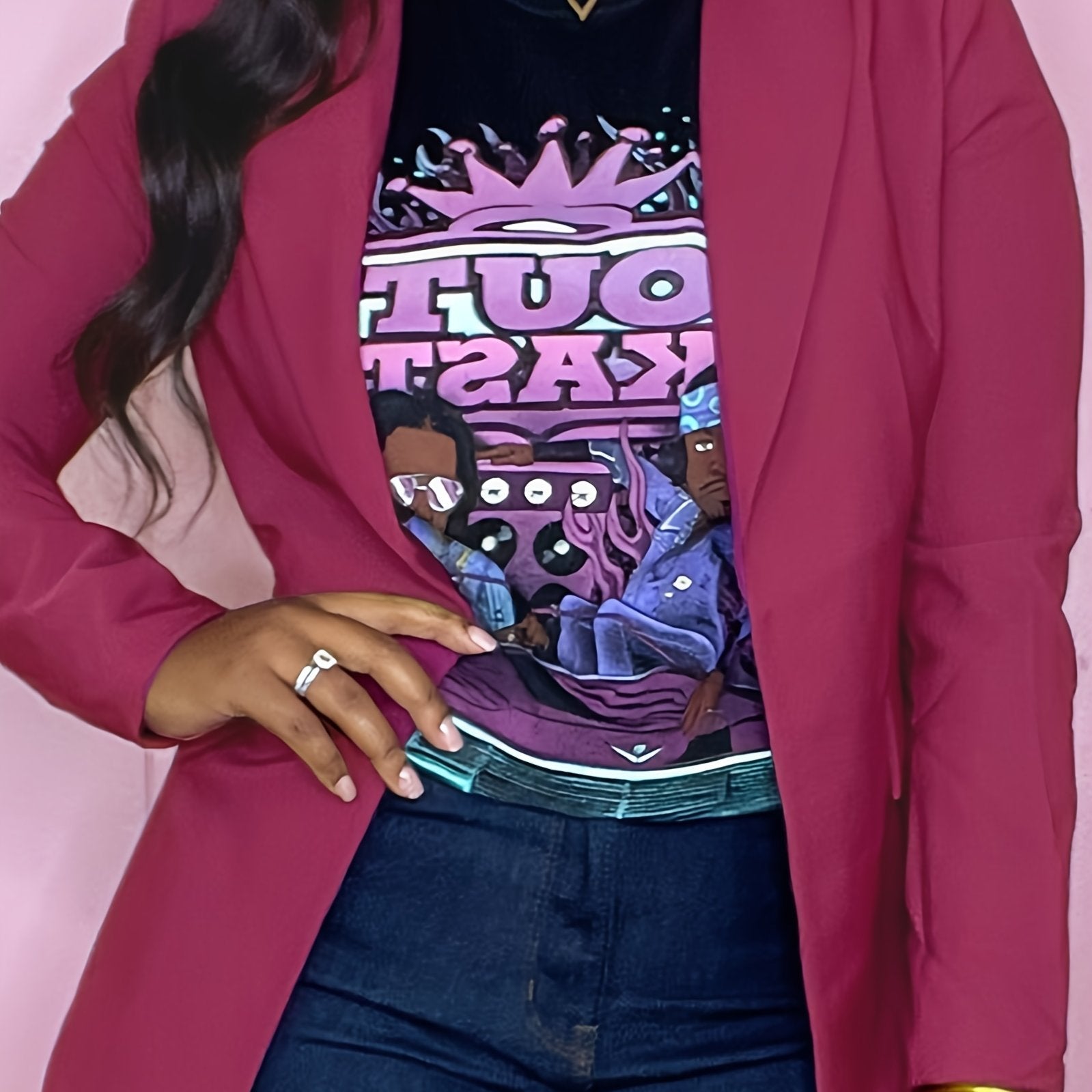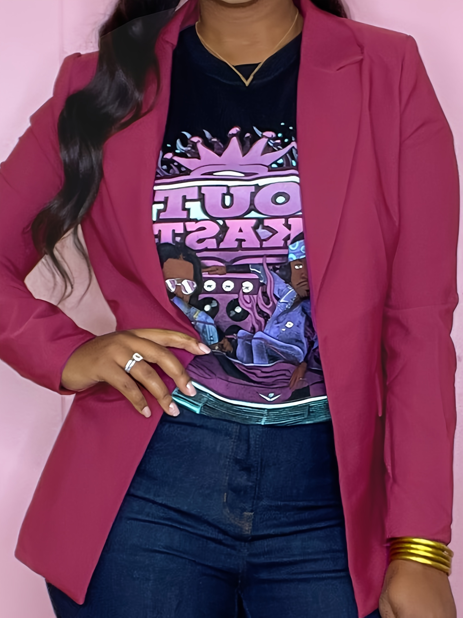 Stylish Solid Long Sleeve Open Front Lapel Blazer