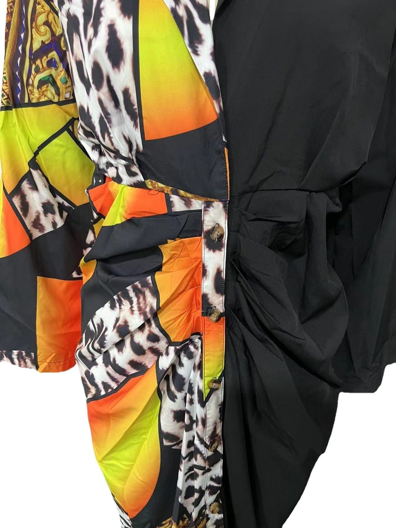 Women's Dresses Casual Elegant Long Sleeve V Neck Button Print Fashion Loose Dresses